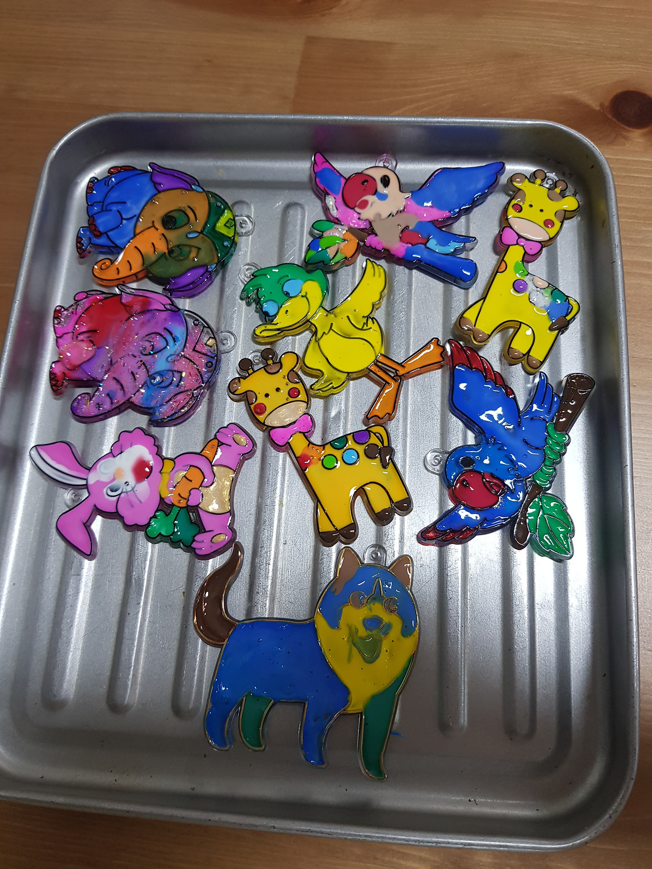 그래서 아이들을 따로 떨어뜨려 앉히고 조물조물 클레이 놀이를 했다. 아이들과 한 시간 넘게 클레이 놀이를 했더니 알록달록한 동물친구들을 여럿 만들 수 있었고 손으로 조몰락조몰락 계속 만지니 내 마음도 서서히 안정을 되찾아 갔다.