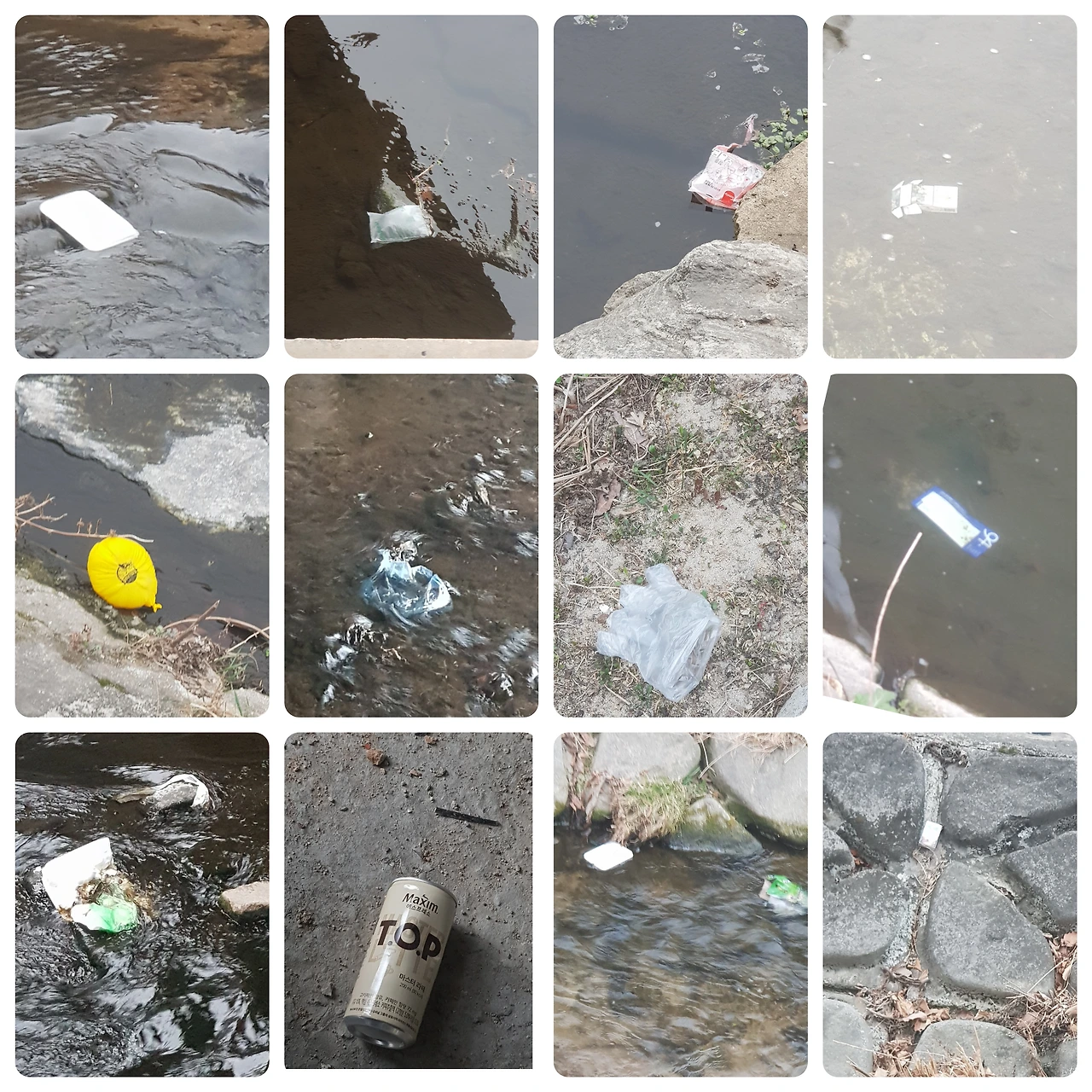 물속에 있는 담뱃갑이나 스티로폼 접시, 비닐봉지, 마스크 봉지, 과일 포장 스티로폼, 소주병, 스티로폼 박스 등은 울타리가 쳐있는 저 아래 개천에 있었기에 내가 주울 수 있는 범위 안에 있는 것부터 줍기 시작했다.