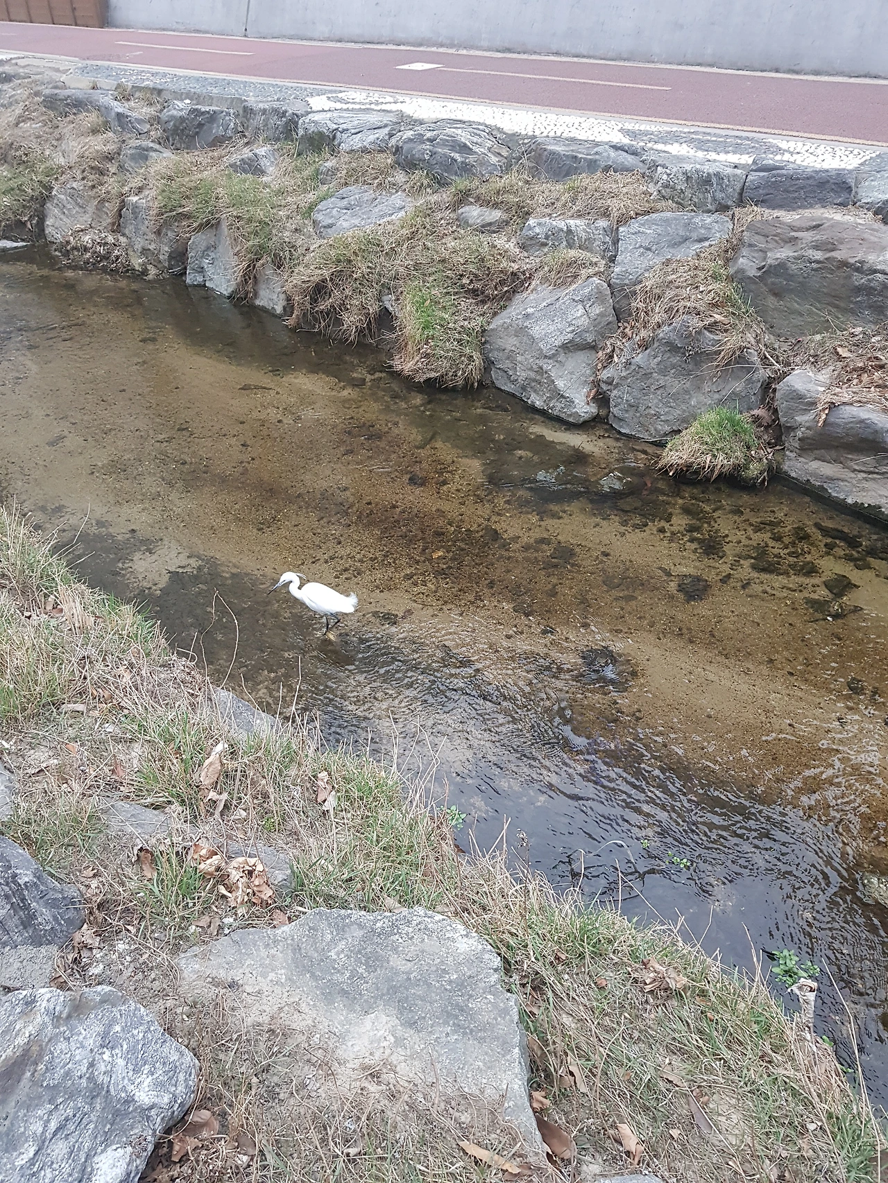 혼자서 여유 있게 걷다 보니 어느새 중랑천으로 향하는 길이 나왔다. 걷다가 우연히 학인지 두루미인지는 정확히 모르겠지만 하얀 새 한 마리를 만났다. 이름도 모르고 어떤 새인지도 모르지만 이렇게 큰 새를 만나니 반가웠다.