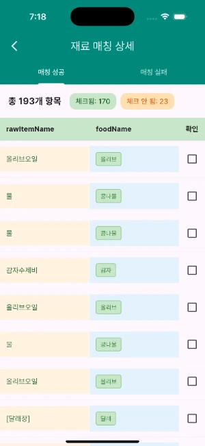 3. 앱에 있는 음식 DB랑 연결 짓는다.
