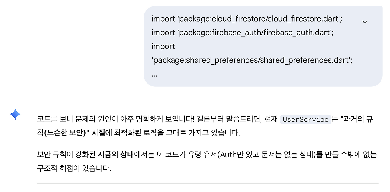 문제 진단을 위해 Gemini와 논의를 해봤어요.