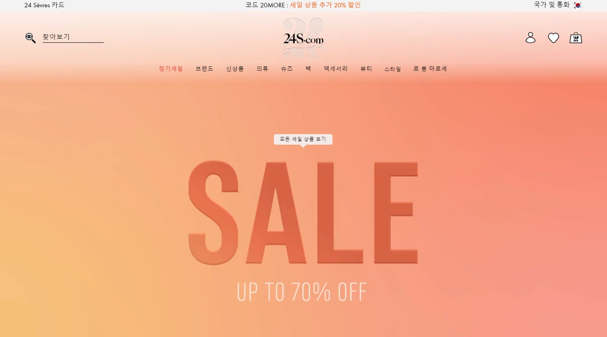 이전의 실패를 딛고 2017년 오픈한 LVMH의 온라인 쇼핑몰 24S는 루이비통을 포함, 하이엔드급 명품부터 디자이너 브랜드까지 220여 제품을 판매하고 있습니다. 전 세계 100개국에 배송 서비스를 제공하는 24S의 국가별 매출 순위에서 한국도 10위권에 든다고 하는데요. LVMH 회장이 이 사이트를 직접 이용하며 서비스를 체크한다는 24S CEO 에릭 고게의 인터뷰에서 그들이 디지털 전환에 얼마나 무게를 두고 있는지 짐작할 수 있습니다.