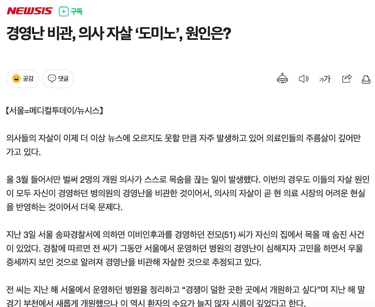 의사의 실력만으로는 살아남기 힘든 게 현실이다.