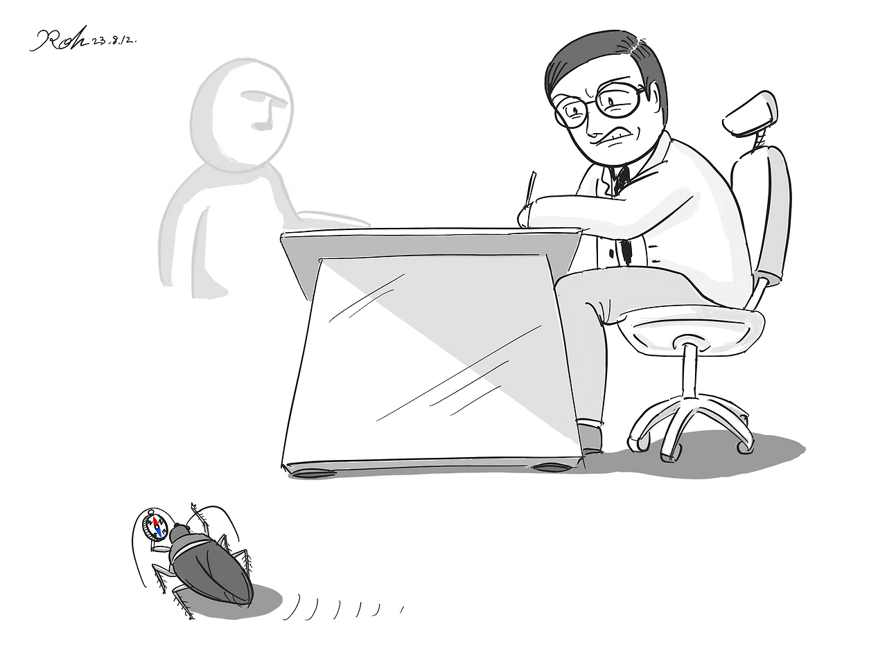 최근 장례를 치른 환자와 면담 중이었다. 진료실 바닥에 검은 점 같은 것이 진즉부터 거슬렸었다. 불규칙한 움직임으로 미루어보아, 생명체임이 분명했다. 죽음을 이야기하면서 살아있는 것에 신경 쓰고 있는 상황이 아이러니했다. 살아온 날이 헛되지 않은지라, 그것의 정체를 알아차리기는 어렵지 않았다. 벽 쪽 멀리에 있는 바퀴벌레가 당장 방해가 되진 않았지만, 면담에 온전히 집중하기는 어려웠다.