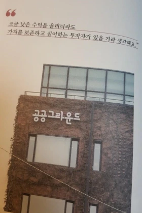 "보통 부동산 수익을 5~7% 정도로 잡는데요, 저희는 투자를 유치할 때 2~3%의 수익을 말씀드리고 있어요. 고수익은 아니지만 조금 낮은 수익을 올리더라도 해당 자신이 가진 유무형의 가치를 보존하고 싶어하는 투자자나 기억이 있을 거라는 생각으로 일종의 실험적인 투자를 하시는 분들을 모은 거죠." - 그렇다고 기부나 자선은 아니다. 공공그라운드는 투자자들에게 2~3%의 '적정 수익'을 보장하는 임팩트 투자사다. 임팩트 투자는 재무 이익과 사회적 가치를 동시에 얻는 투자 형태다. ... 공공그라운드는 그중에서도 부동산을 직접 매입해 투자하는 방식으로 임팩트 투자를 하는 셈이다.