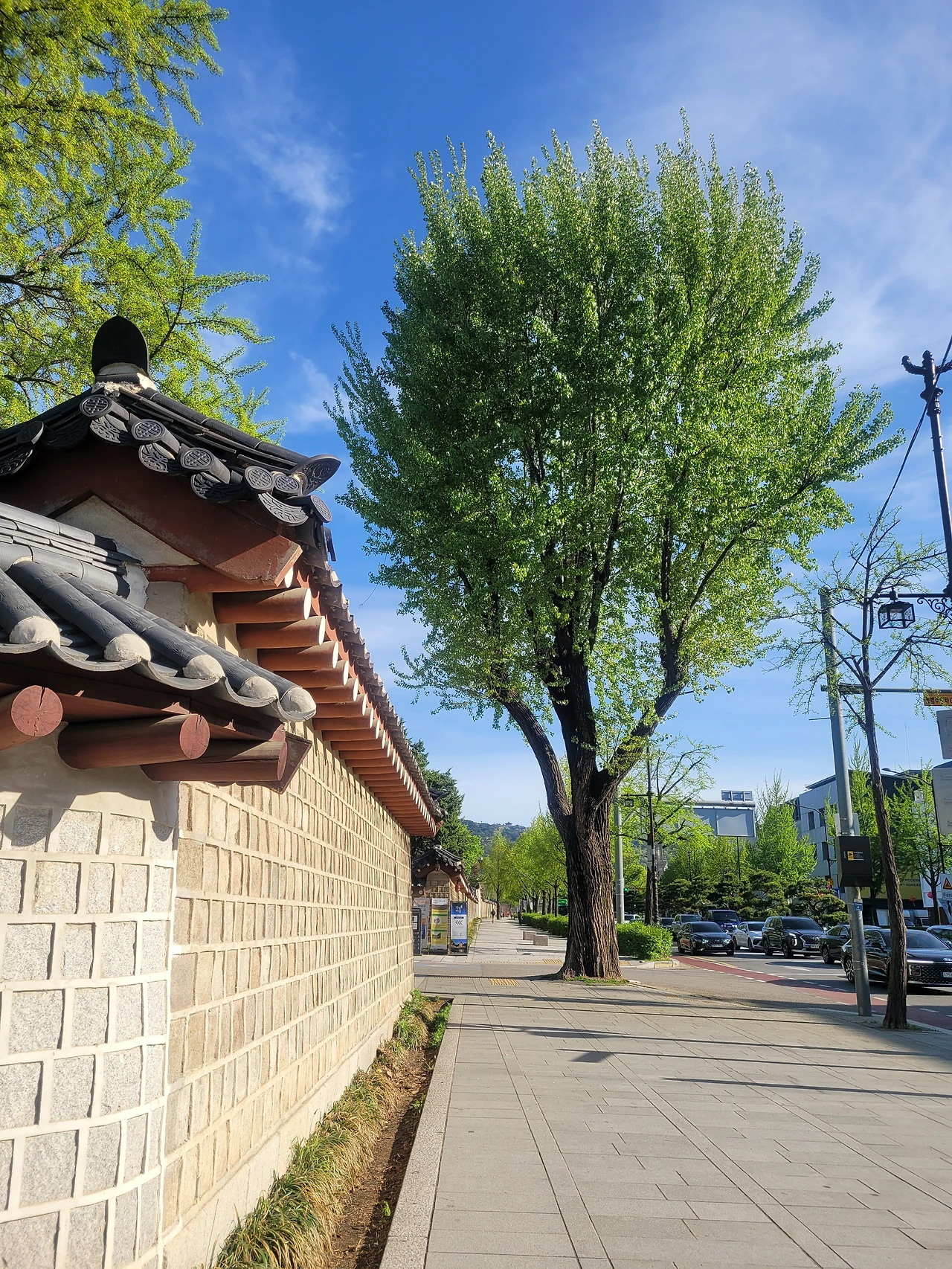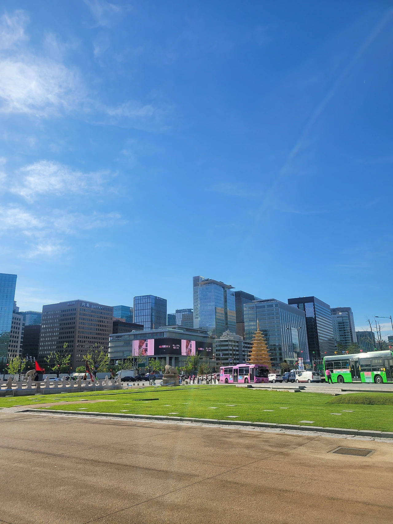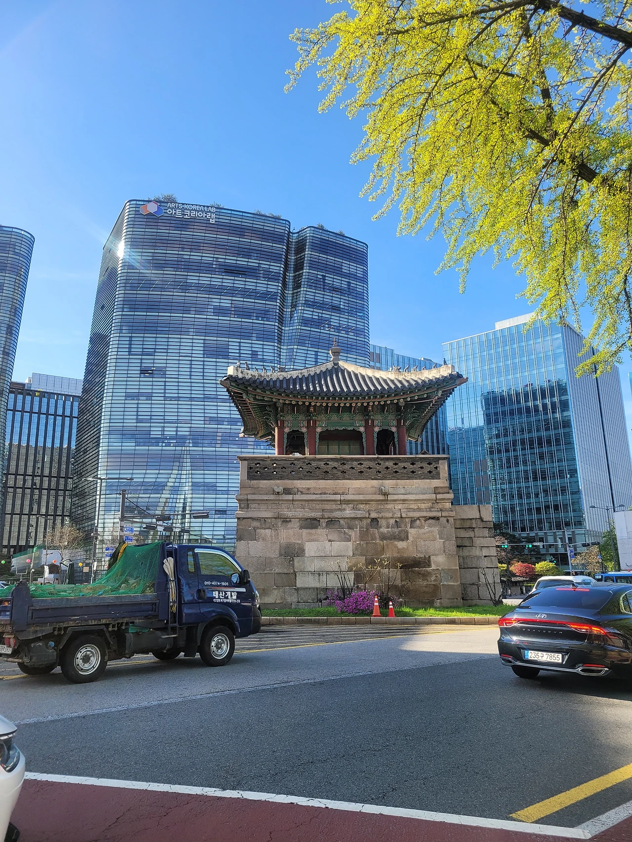이런 전통 건축물과 뒤에 곡선 형태, 유리로 이루어진 현대적 건물이 함께 있는 모습이 서울의 매력 중 하나인 것 같다.