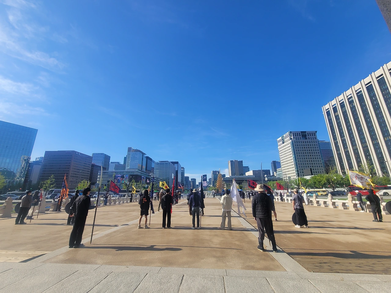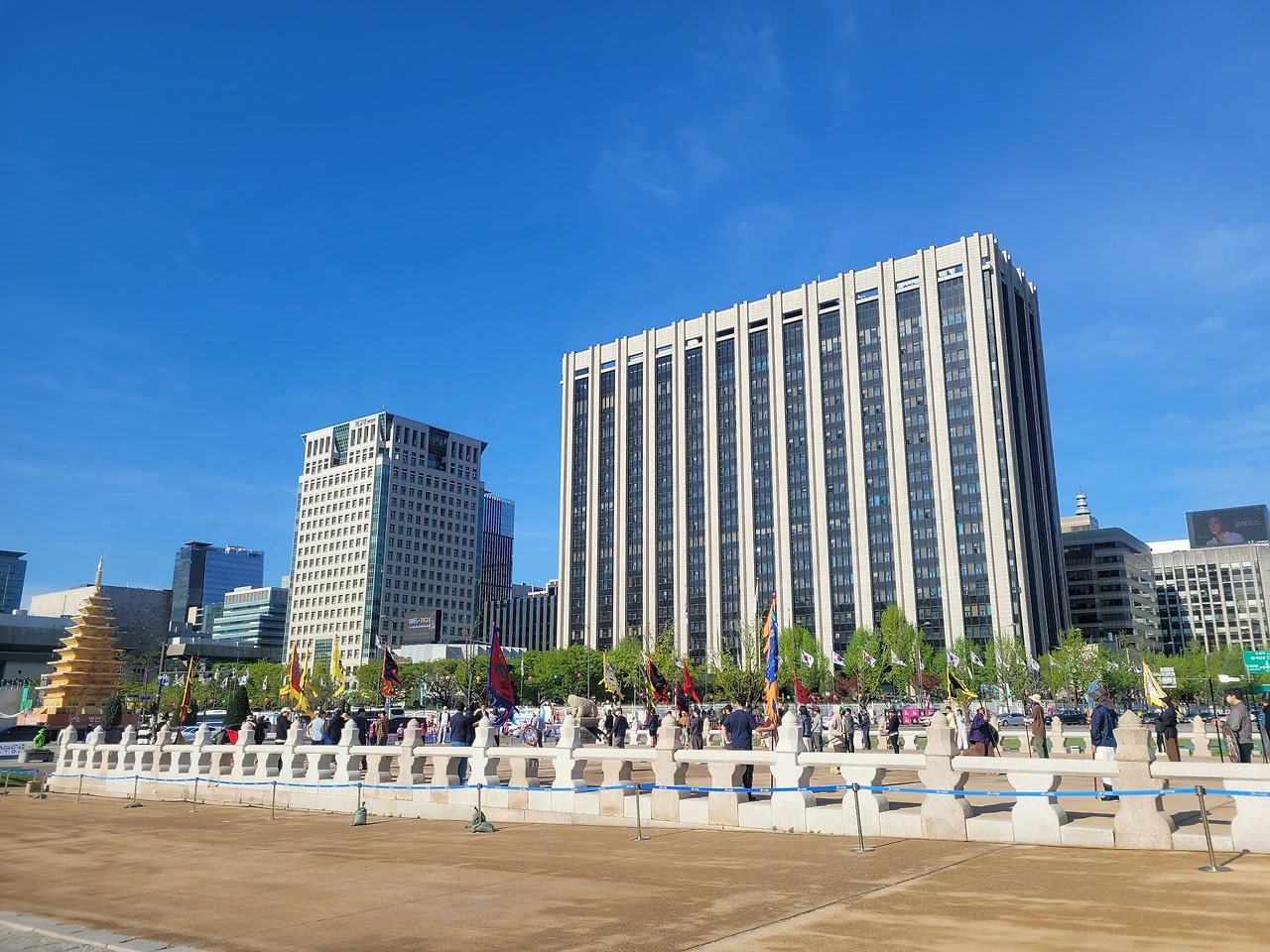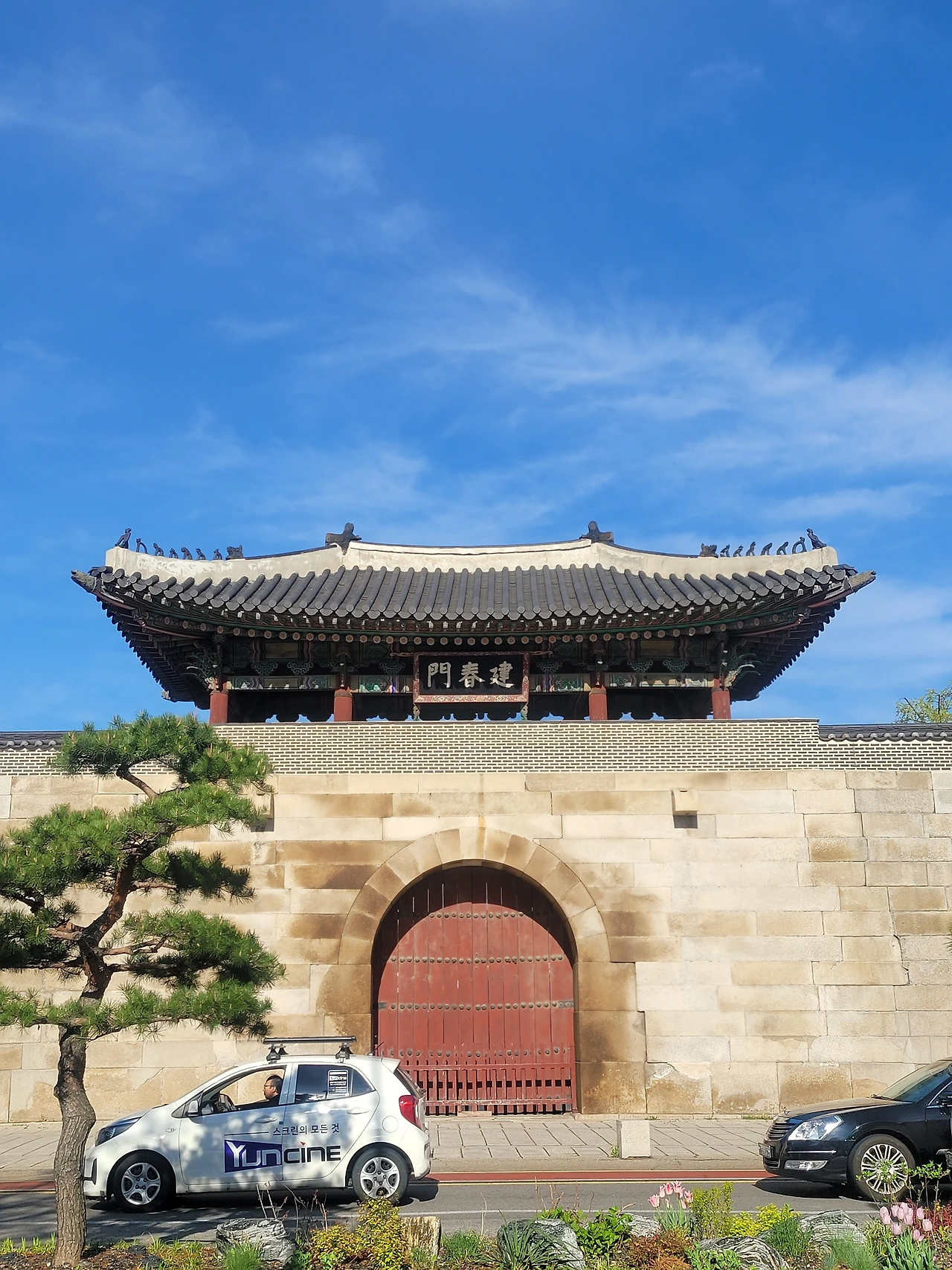 이런 전통 건축물과 뒤에 곡선 형태, 유리로 이루어진 현대적 건물이 함께 있는 모습이 서울의 매력 중 하나인 것 같다.