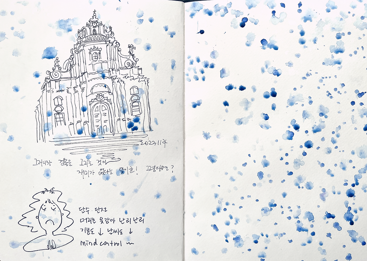 노트 위로 작은 빗방울이 토독토독 떨어졌다.