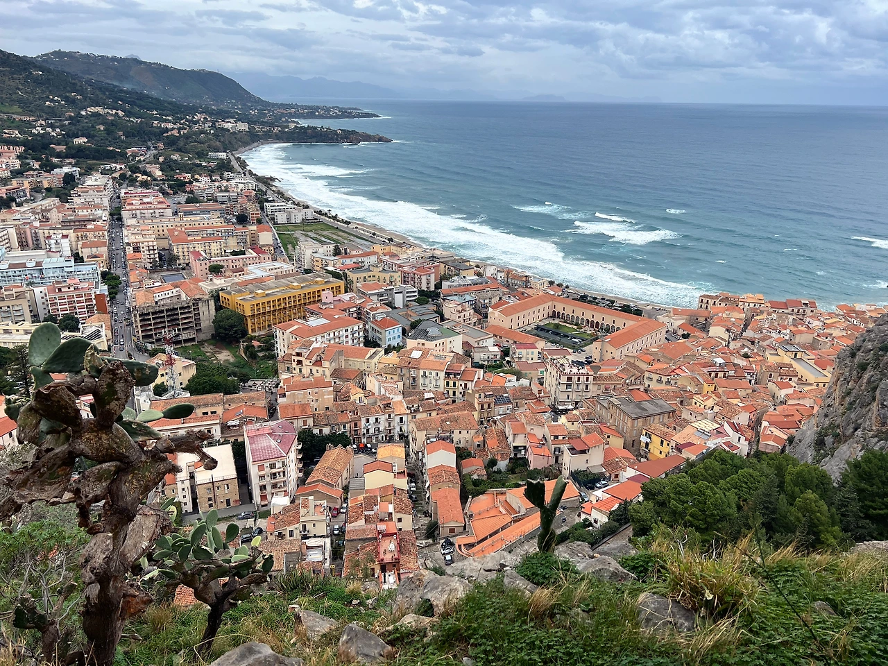 체팔루 여행 사진에 빠지지 않고 나오는 아치형 출구를 나서자 마을 안 쪽의 완만하고 둥근 만으로 밀려오는 파도가 보였다.
