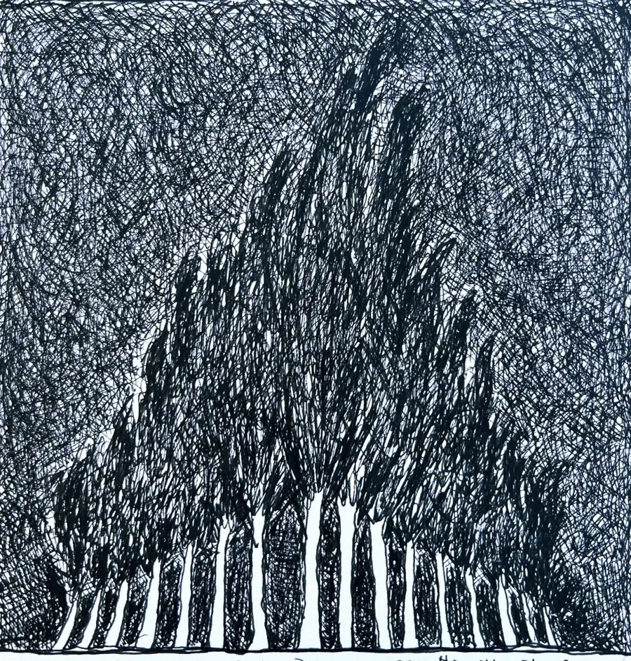 깜깜한 밤에도 나무 기둥의 흰빛이 환했다.