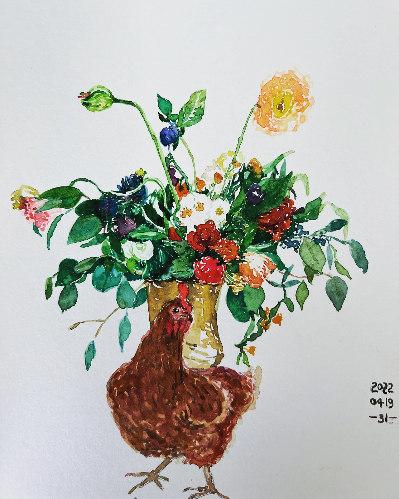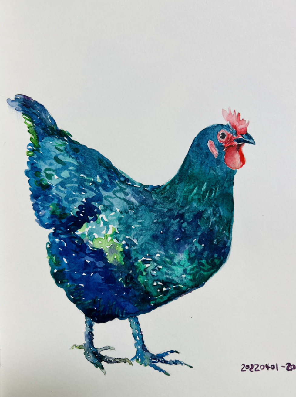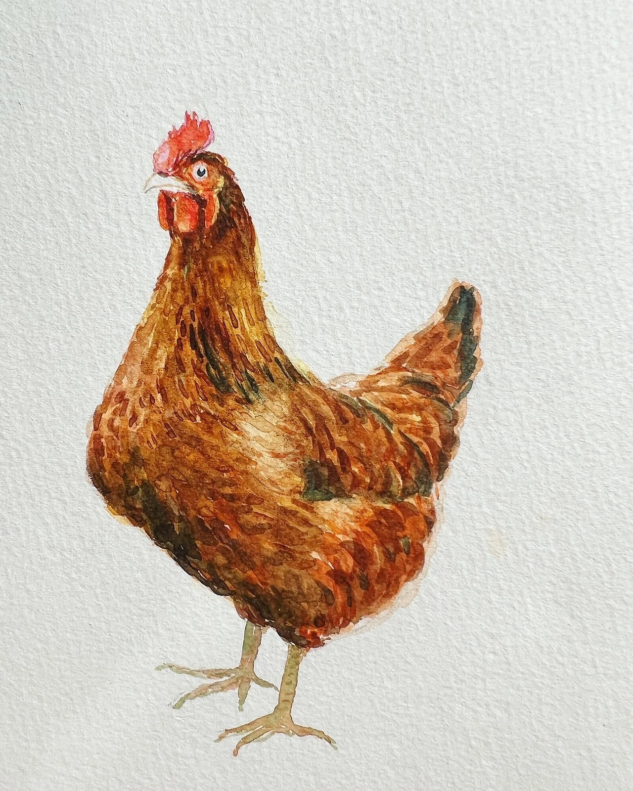 수채화로 그린 닭은 자신 없는 내 모습을 닮았다.