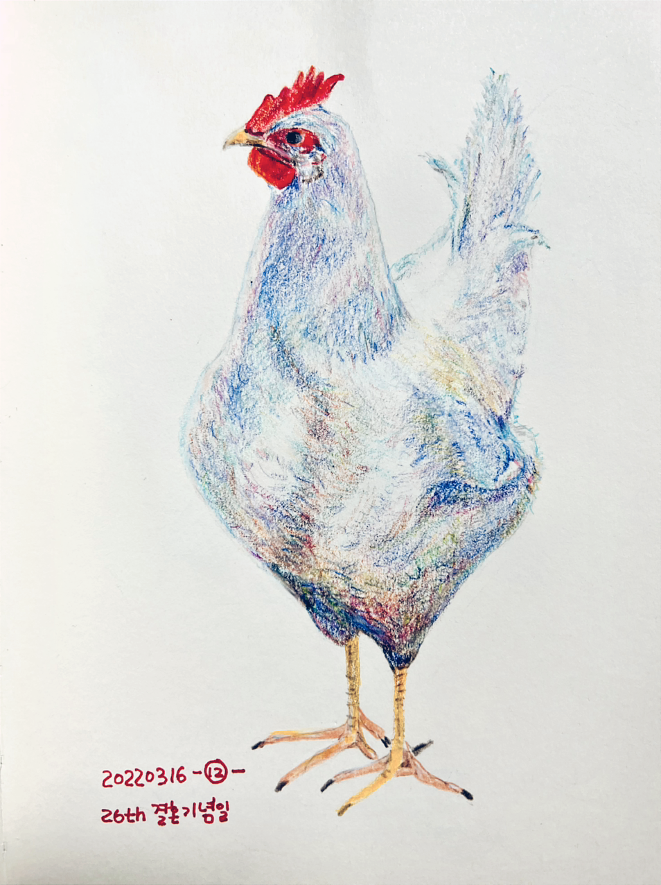 연필과 펜, 색연필로 그린 닭은 보이는 나의 모습을 닮았다.