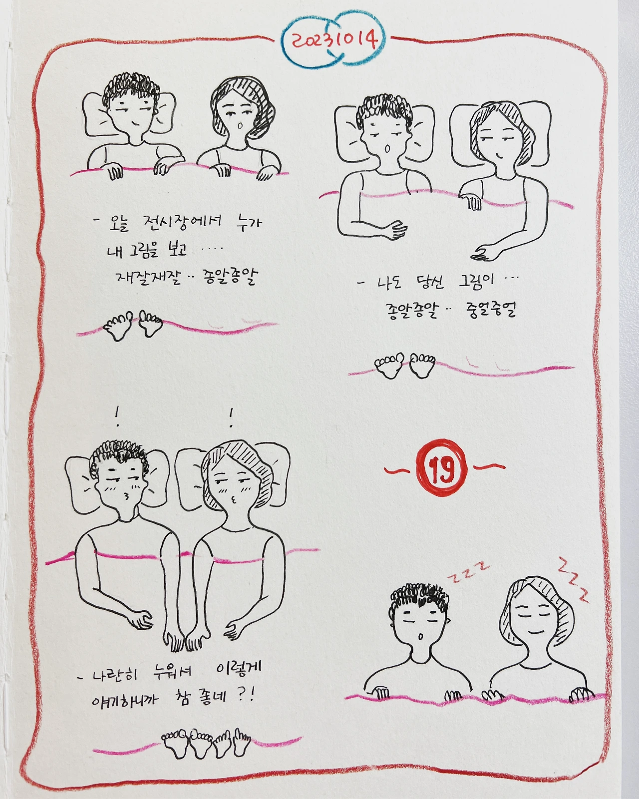 #그림일기#19금?#상상에맡김#대화#드로잉저널#펜드로잉#drawing#pendrawing#drawingjournal#conversation#love#wifeandhusband