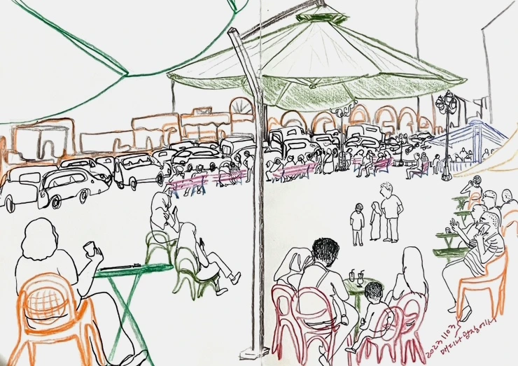 끔찍한 교통체증으로 오도 가도 못하는 차들과 광장에서 느긋한 시간을 즐기는 사람들의 대조가 오늘따라 더 선명하다.