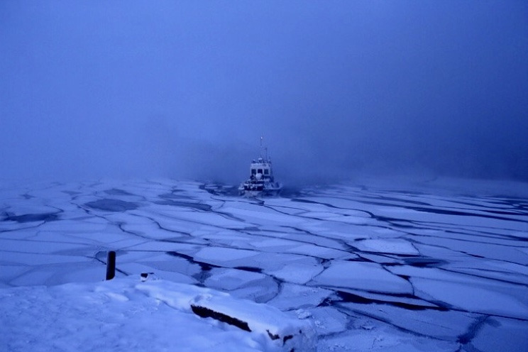 9시가 가까워지자 쇄빙선이 얼음을 가르며 먼저 나타났다. 그리고 뒤이어 우리를 태우고 갈 배가 도착했다.