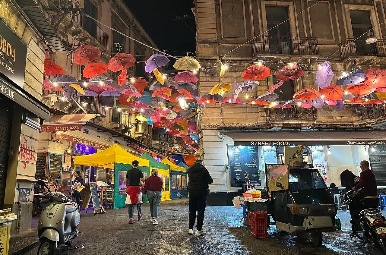 저녁 먹으러 나간 카타니아의 밤거리는 으스스할 정도로 칙칙하고 낡은 건물에 온통 낙서 투성이었다.