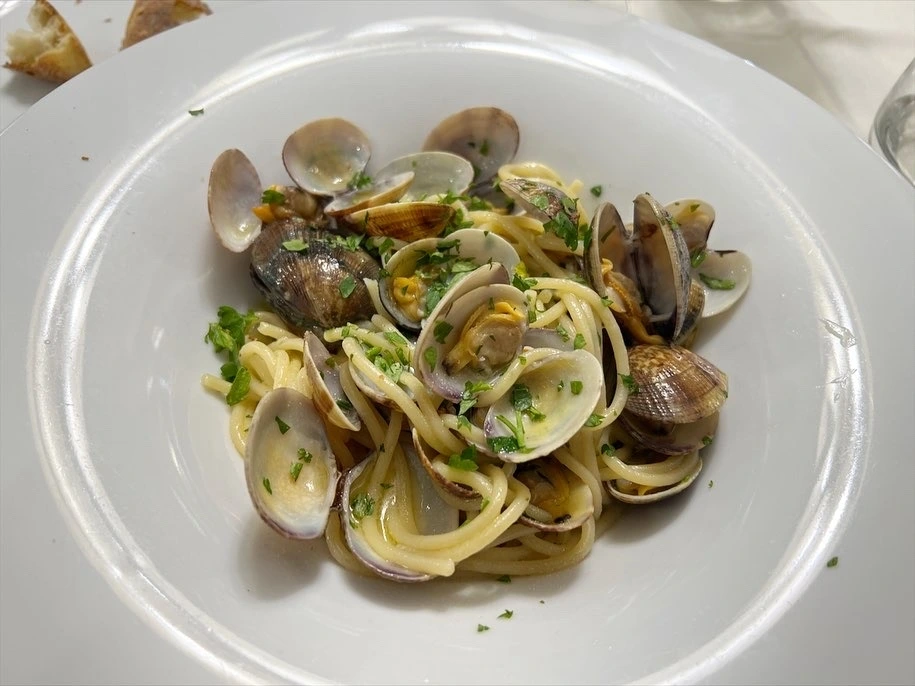 봉골레파스타는 감칠맛이 넘치고 화이트와인은 적당히 드라이하다.