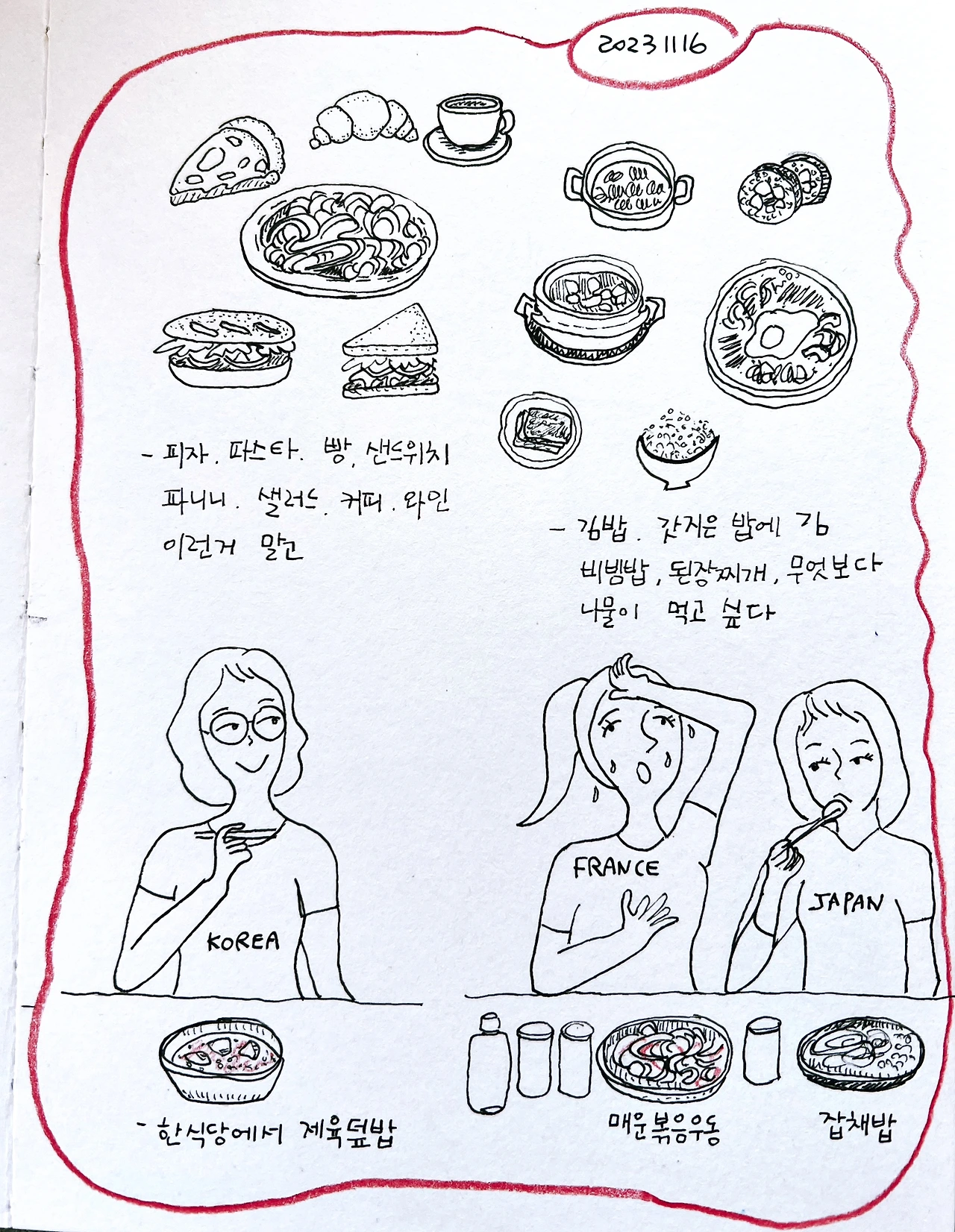 그중 프랑스 국적 여학생이 매운 볶음우동을 먹으며 얼마나 매워하던지 보는 내가 다 땀이 날 지경이었다.
