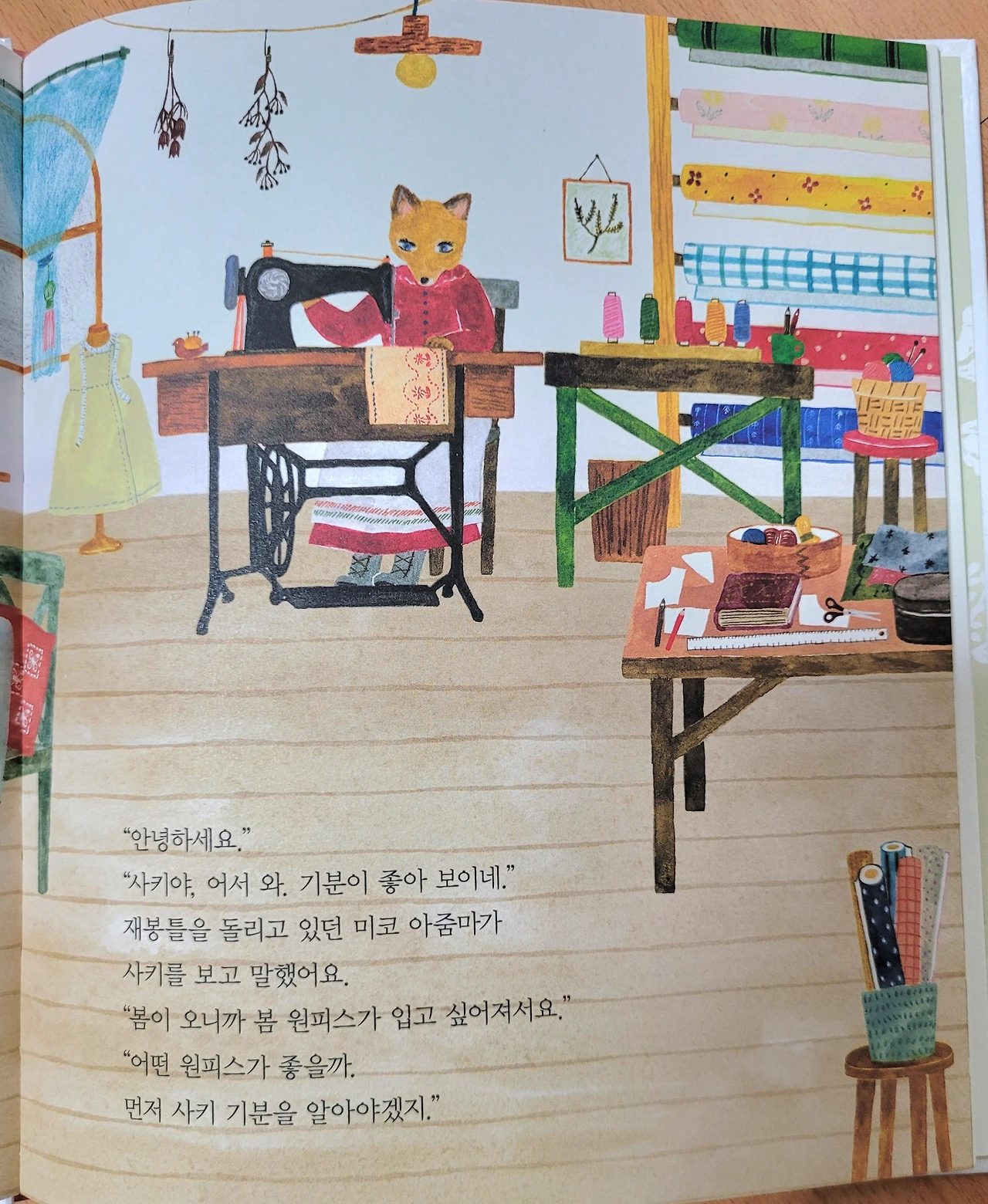 이시이 무쓰미 작가의 그림책 ‘봄의 원피스’는 옷을 만드는 과정을 통해 읽는 이의 오감을 깨우는 그림책이다.