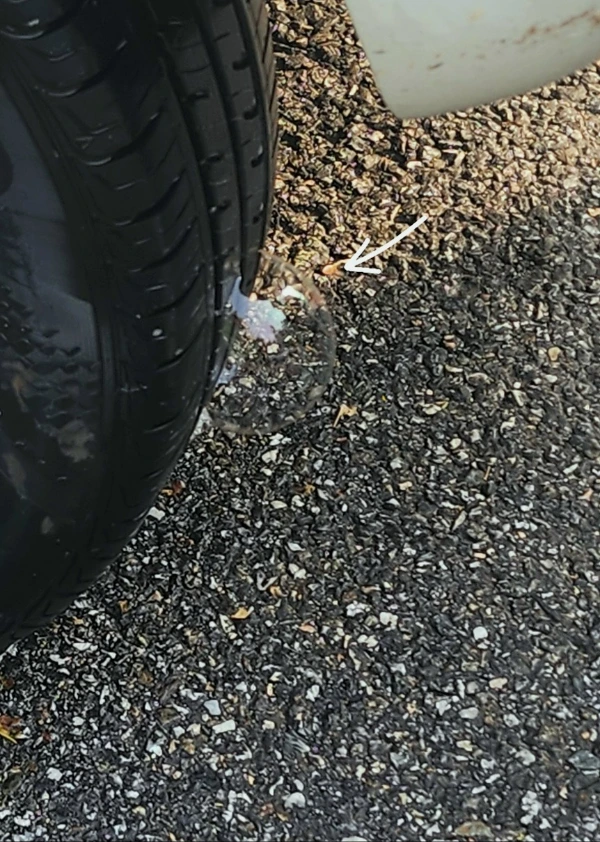 ‘저건 말풍선 같아. 타이어가 “여기야, 바로 이곳에서 바람이 새고 있어!”라고 말하는 것 같네.’