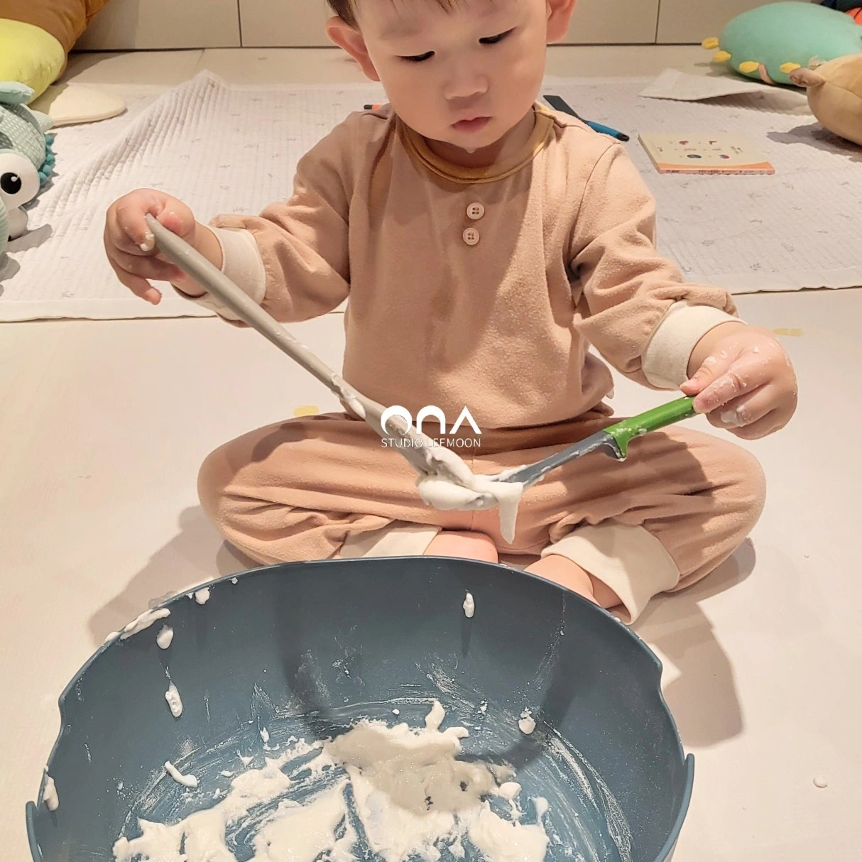 영유아기에는 물, 쌀과 콩, 밀가루 반죽 같은 것들로 시작했다. 흘려도 되고, 쏟아도 되고, 뭉개져도 괜찮은 것들.