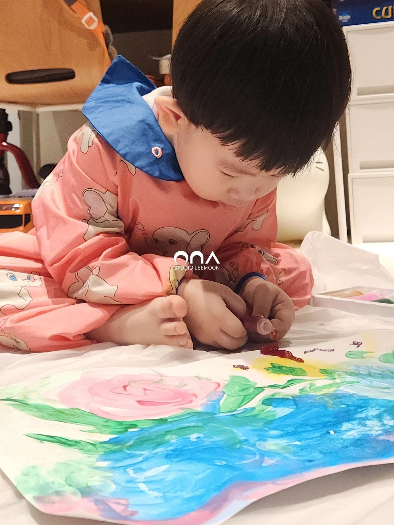 아이는 당연하다는 듯 크레파스 하나를 꺼내 들고 끄적인다.