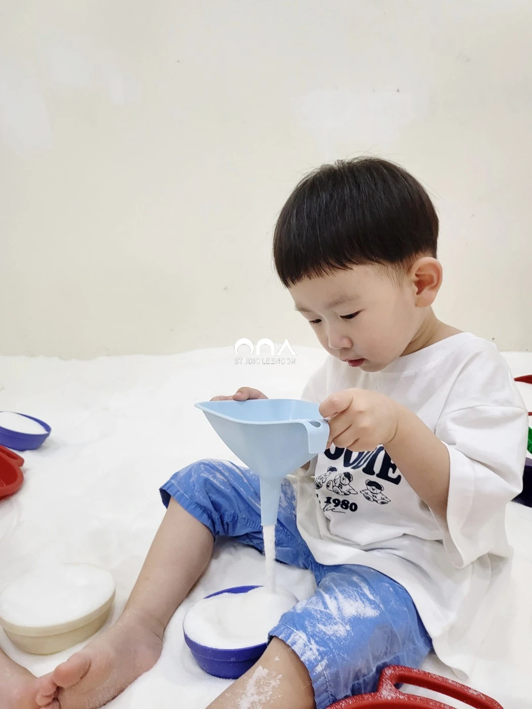 쥐었다가 흘려보내고, 컵으로 옮겼다가 다시 쏟고, 체로 흔들며 ‘내리는 것’을 눈으로 확인했다.