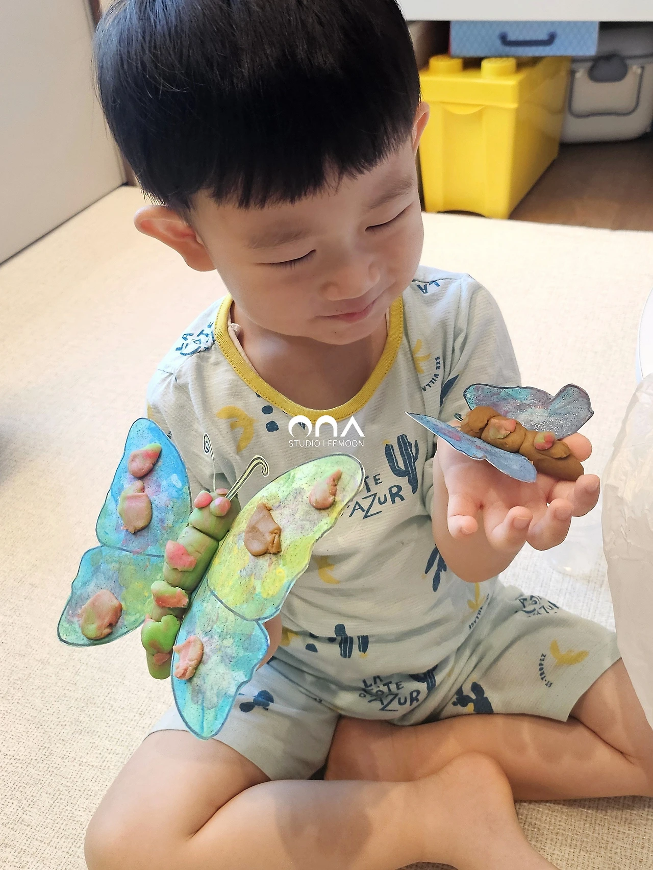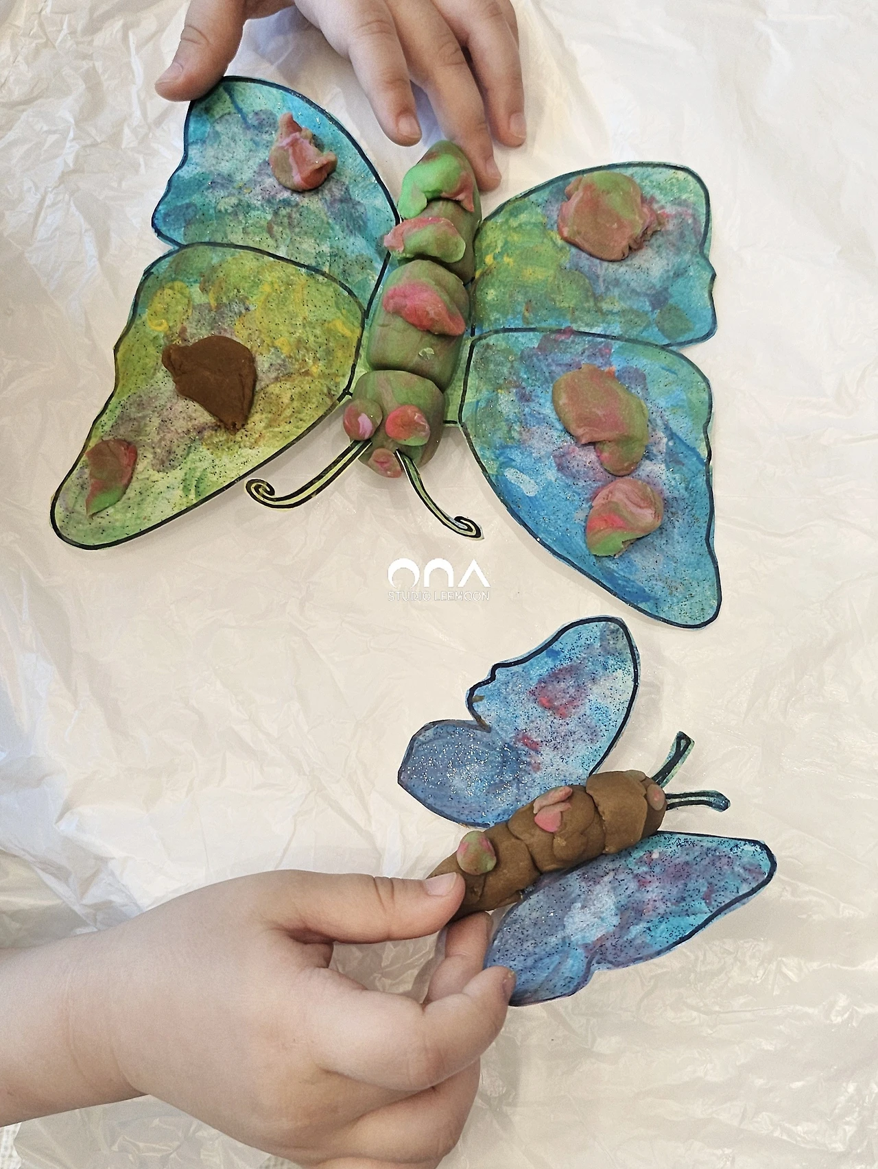 작고, 큰 두 마리의 나비를 만들고도 아이는 거기서 멈추지 않았다. 남은 클레이로 나비를 더 꾸며주고 잠자리도 만들겠다 했다.