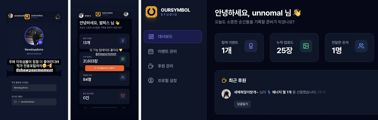 아워심볼의 도네이션도 같은 맥락이다. 사진을 구매하는 거래가 아니다. "당신이 찍어준 사진 덕분에 내 순간이 기록됐다"는 감사의 표현이다.