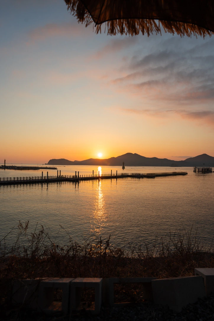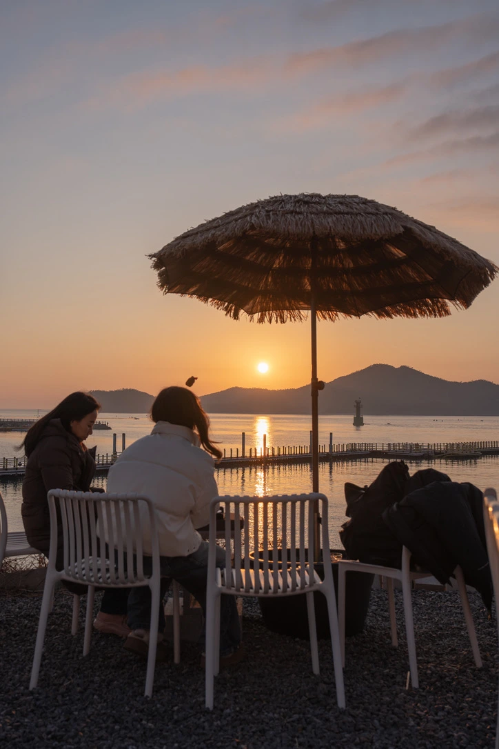 겨울에 야외 카페에서 시원한 아이스아메리카노를 마시며 우린 한동안 서해 노을을 즐겼다.