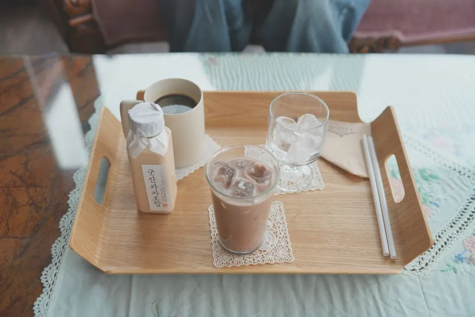 옛날 집의 목재 구조가 드러나는 고풍스러운 인테리어였는데 목재 특유의 아늑하고, 고풍스러운 느낌이 잘 되어 있었다. 카페 오픈은 9시30분인데, 우리가 방문했던 시간은 10 30분이었다. 모든 직원들이 다 출근하기도 전에 우리가 방문했던지라 우리가 갔을 때는 자리가 많이 비어 있었다. 우리는 카페의 시그니처인 아이스밀크티와 와인아메리카노와 초코라떼를 시켰는데 특히, 와인아메리카노가 특유의 향이 있으면서 독특하고, 맛이 있어서 평소 아메리카노를 좋아하지 않는 편인 나도 맛있게 느껴졌다.