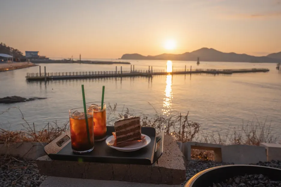 건물이 통째로 다 카페 건물인데 노을이 보이는 해안을 끼고 있어서 노을 맛집이다.