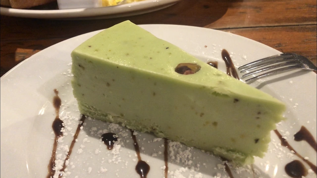 조심스럽게 진한 녹색의 피스타치오 치즈케이크를 골랐다.