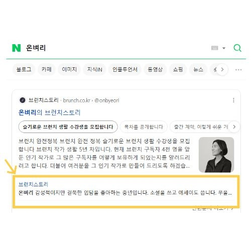 또 아래 이미지는 네이버와 다음의 웹 검색 결과입니다. 이름을 검색하면 아래와 같이 작가 소개가 같이 나옵니다. 브런치는 다음 소속인데 네이버가 더 친절하게 검색해 줍니다.