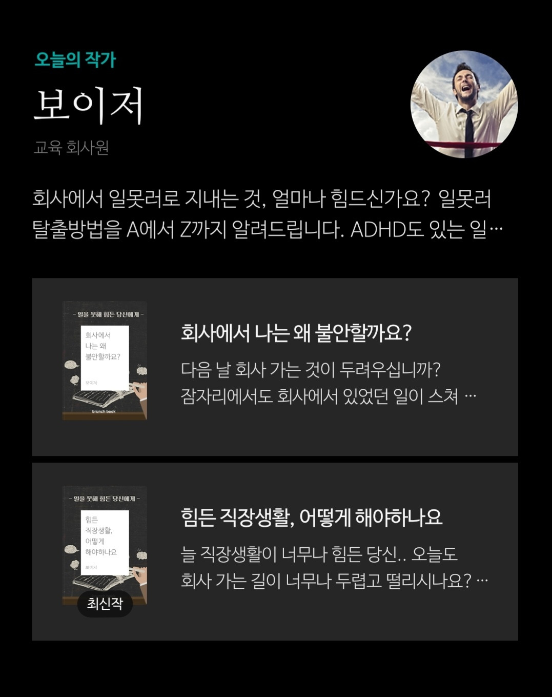 브런치 앱의 메인에 뜨면 아래처럼 보입니다.