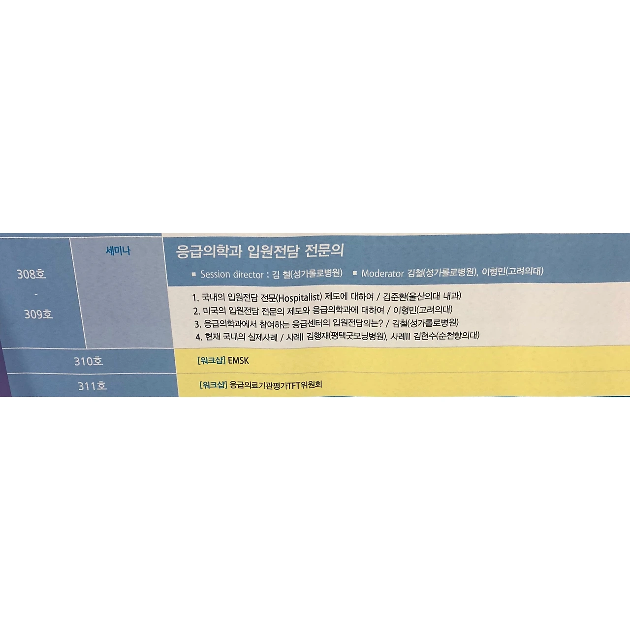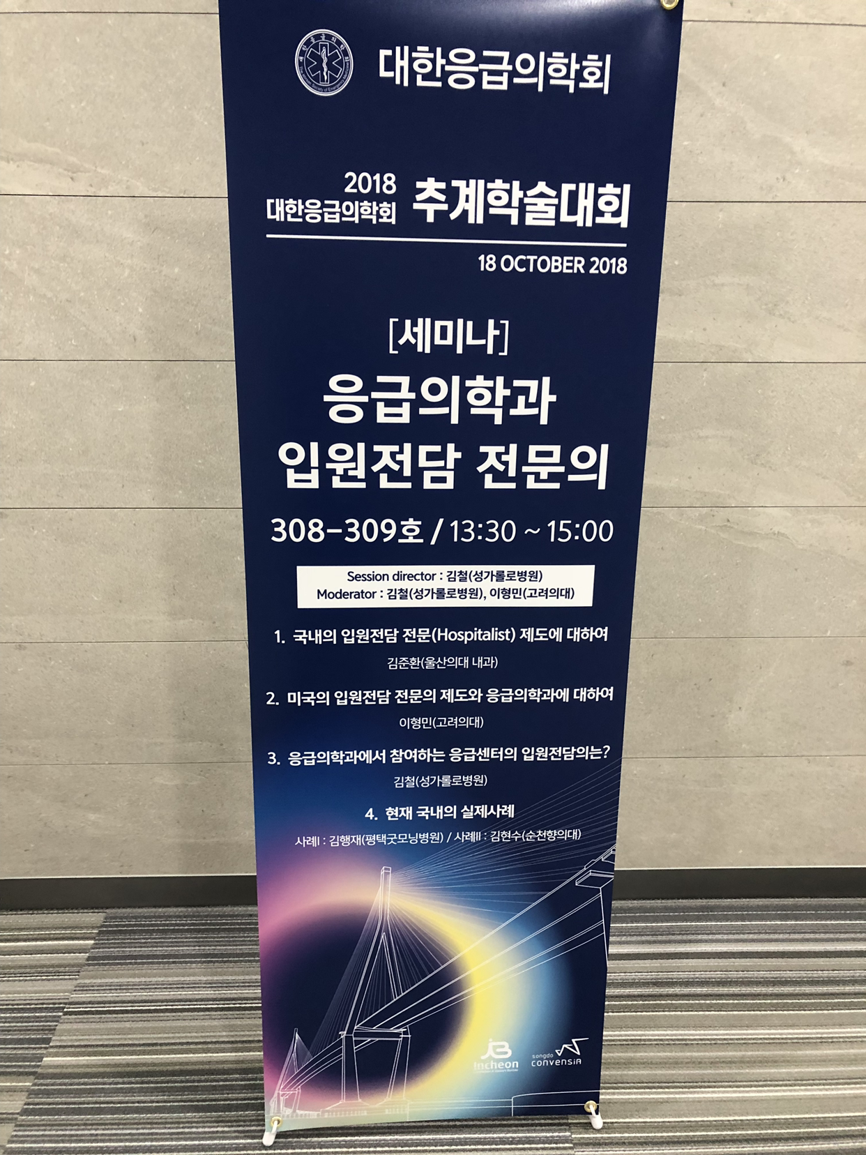 대한응급의학회 추계학술대회 입원전담 전문의 세션에서 강의도 하고 응급의학과쪽에서 보는 입원전담전문의 연결(주로 단기응급병상)에 대한 깊은 논의도 들었습니다. 의료인력 환경의 변화로 입원전담전문의에 대한 관심 및 고민을 느낄 수 있는 시간이었습니다.
