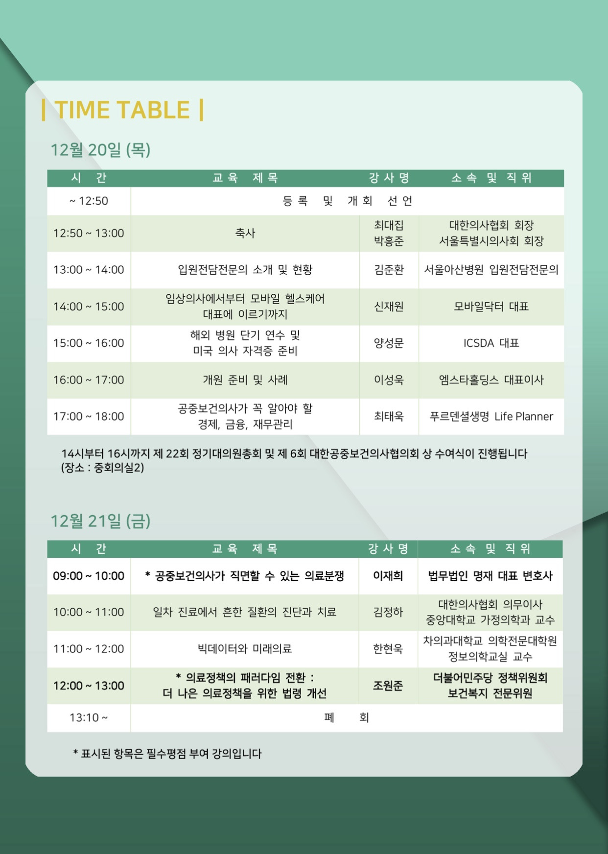 대한공중보건의사협의회 학술대회 강의