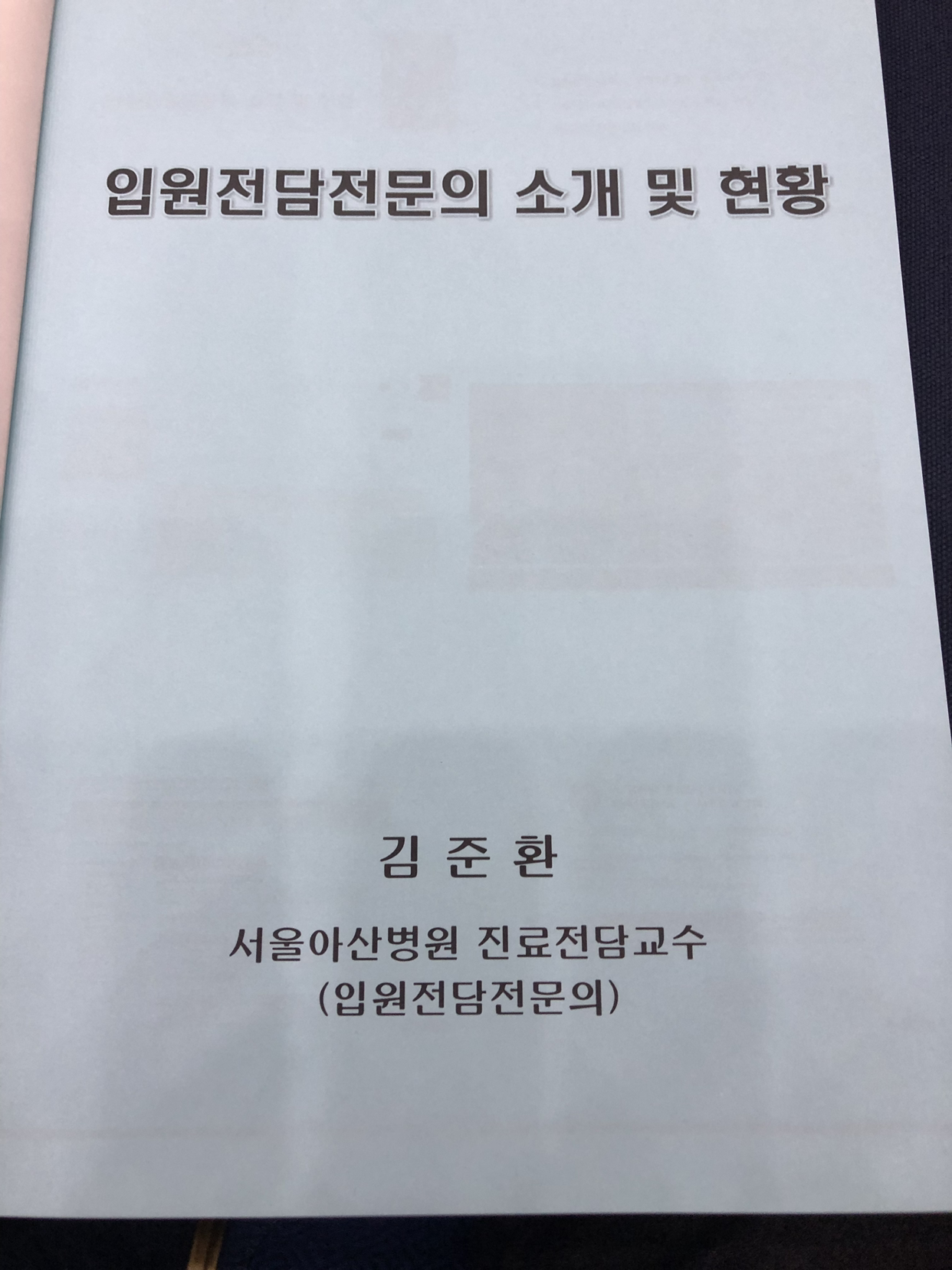 2018년 대한공중보건의사협의회 2차 학술대회 때 입원전담전문의를 소개하고 홍보 강의를 했습니다. 초대해 주셔서 감사합니다.