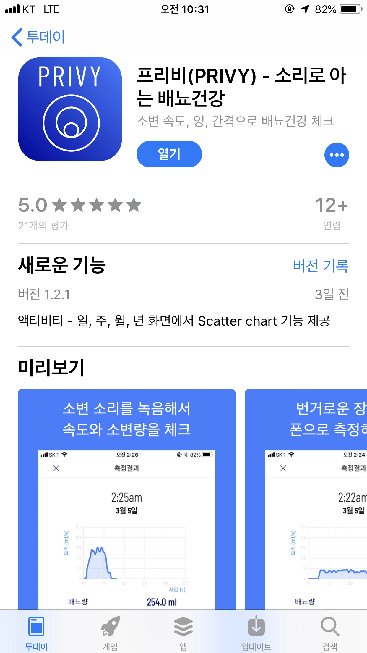 소변소리로 배뇨건강을 측정하는 app 프리비현재는 아이폰 ios 용만 나와있고 안드로이드 버전은 5월 1일 출시한다고 함다인기술 app