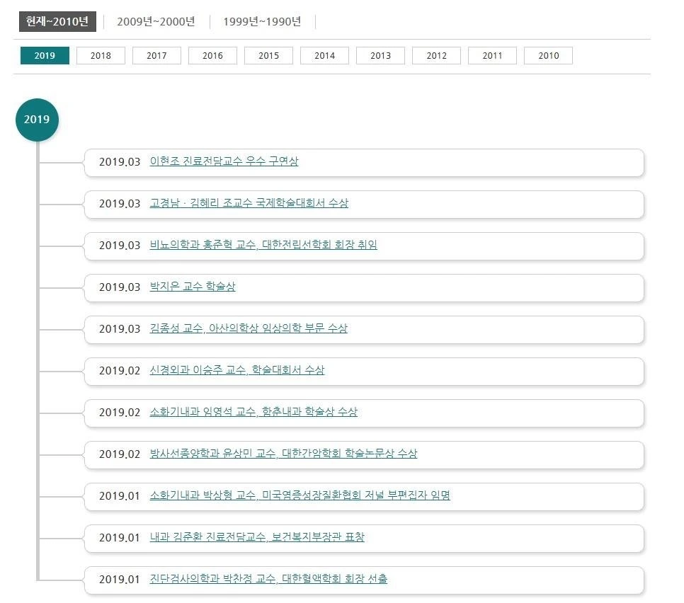 서울아산병원 의료진 동정에 이름이 실릴 수 있어서 감사합니다.앞으로 각 병원에서 더 많은 입원전담전문의 선생님들이 활동하시면 좋겠습니다.http://www.amc.seoul.kr/asan/hospitalinfo/review/achievement.do