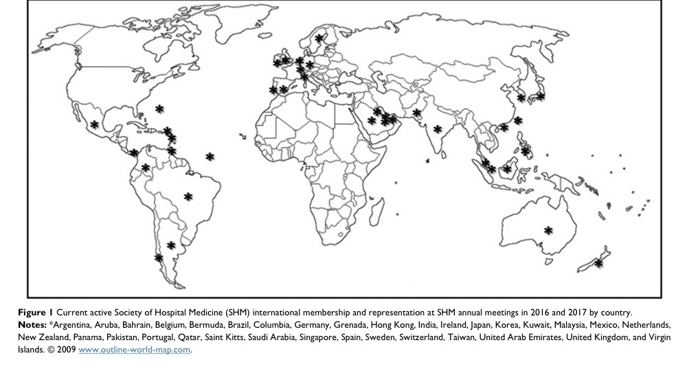 그래서 아래 지도에서 한국이 hospital medicine에서도 잘 역활을 담당하는 나라로 인식되었으면 좋겠습니다.