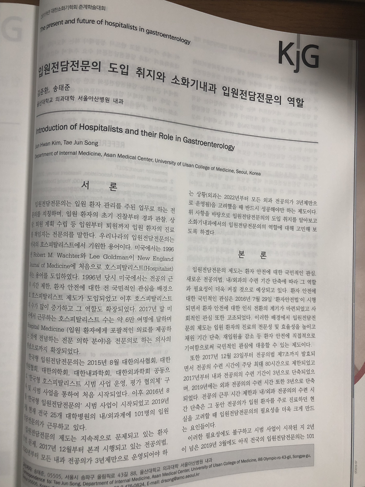 오늘 대한소화기학회 춘계학술대회에 저희 병원 송태준 교수님과 공저한 ‘입원전담전문의 도입 취지와 소화기내과 입원전담전문의의 역할’이라는 주제로 초록을 발표했습니다.현장에서는 저희 병원 소화기내과 입원전담전문의 병동의 현황 및 지표들을 송태준 교수님께서 발표해 주셨습니다.
