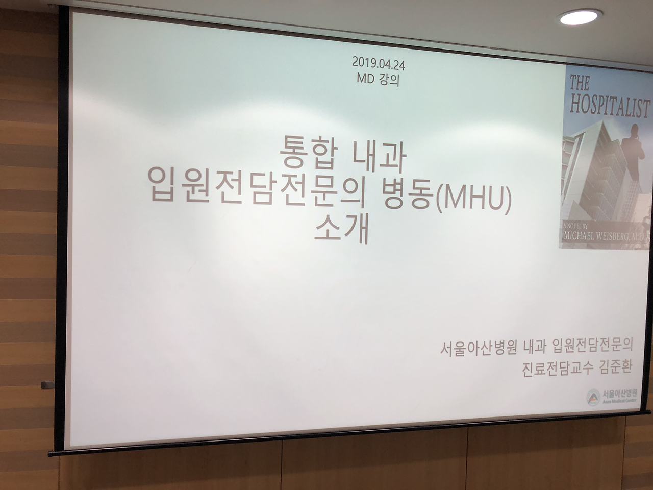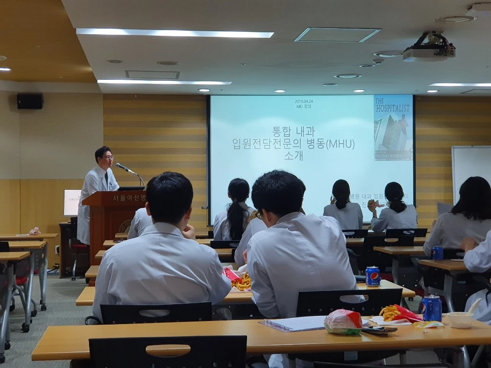 오늘은 다음주 오픈 예정인 서울아산병원 통합내과 입원전담전문의 병동(MHU) 관련 내과 전공의 선생님 대상 설명의 시간을 가졌습니다. 응급실 근무하는 내과 전공의 선생님들이 관심 많이 보여 주셨습니다.