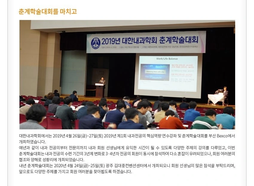 대한 내과학회 뉴스레터 4월 춘계학술 대회 사진에 제가 입원전담전문의의 워라벨 발표했던 장면이 올라왔네요^^