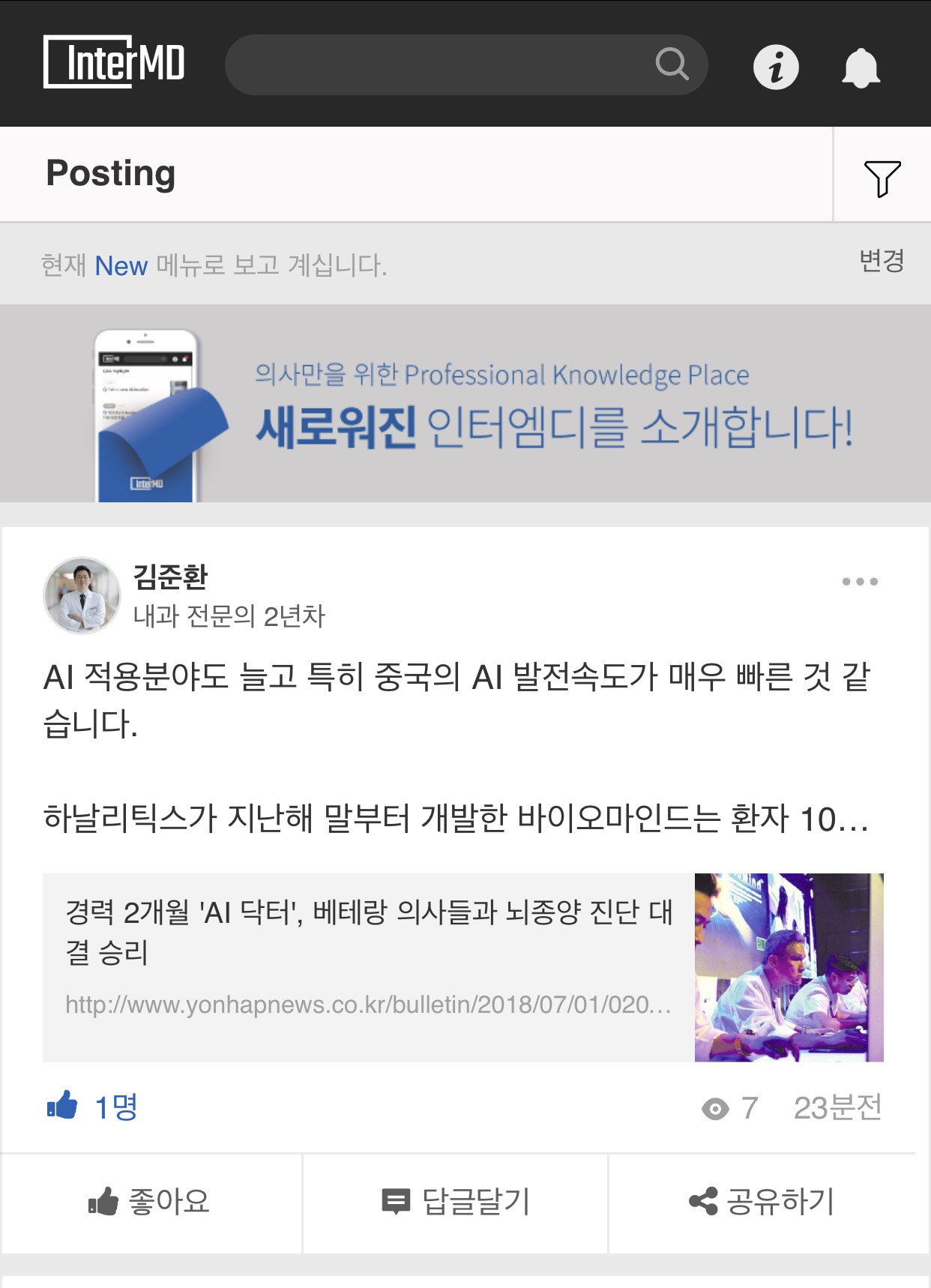 지금보다 깔끔한 디자인과 사용자의 모바일 필요성을 잘 반영해 줬으면 했는데 인터엠디 2.0 버전이 그 부분을 다는 아니어도 반영할려고 노력한 것 같다.