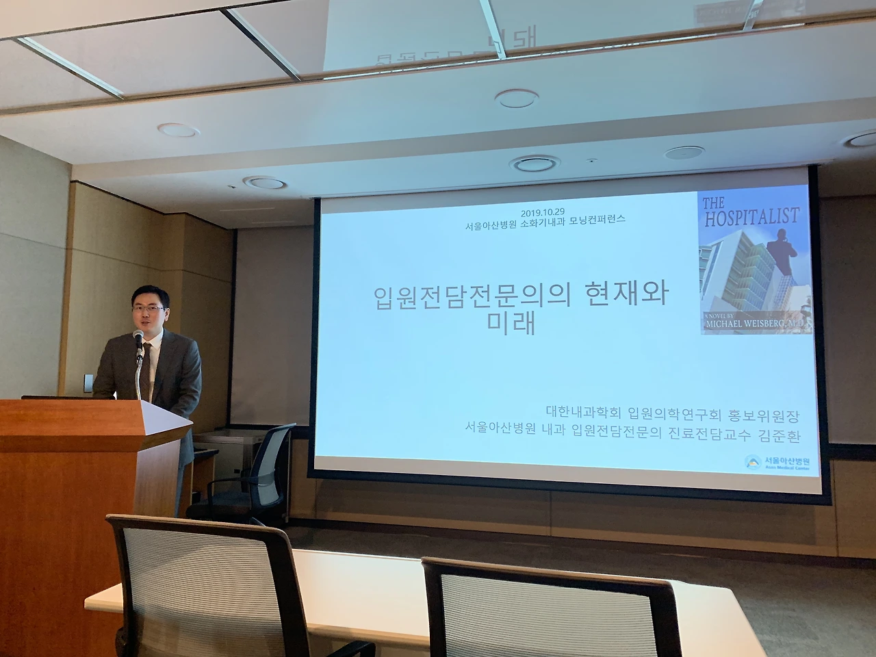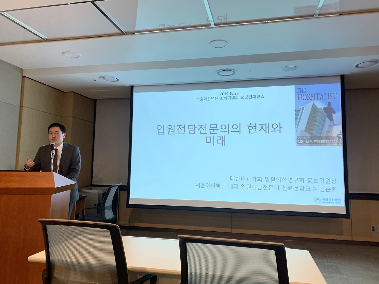 오늘은 저희 병원 소화기내과에서 모닝컨퍼런스에 초청해 주셔서 입원전담전문의에 대한 발표를 했습니다.입원전담전문의 하기 전에 소화기내과 전공하려고 했었기 때문에 개인적으로는 의미있었던 시간이었습니다.은사님들의 지적과 Insight 잘 정리해서 서울아산병원 입원전담전문의를 정착시키는데 조금이나마 도움이 되면 좋겠습니다