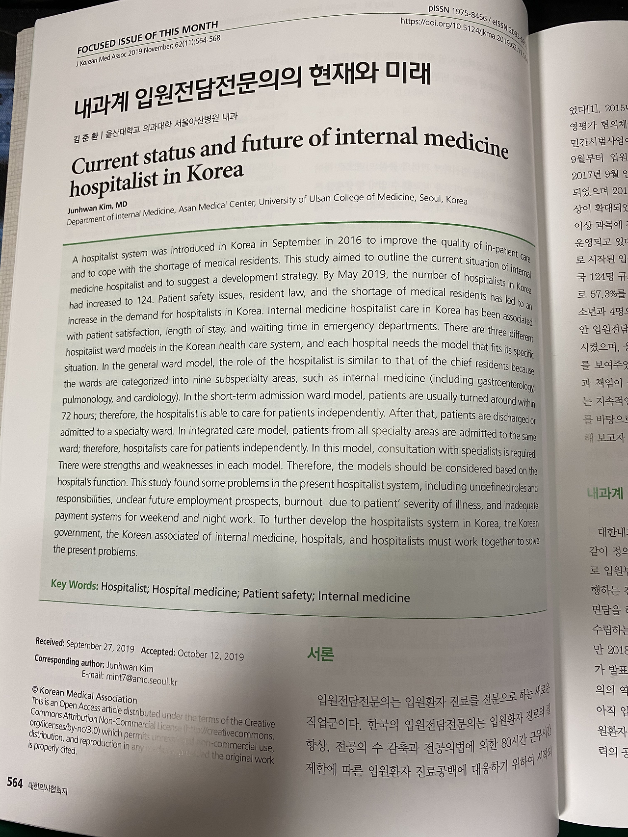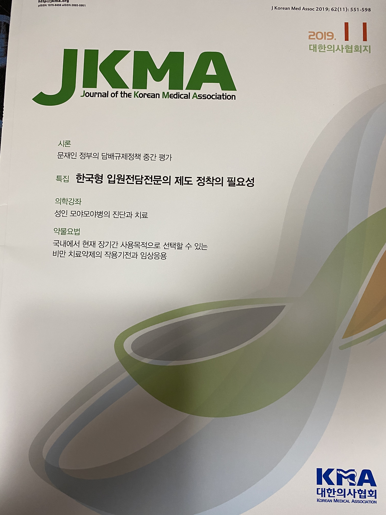 11월 글이 실린 대한의사협회지(JKMA)를 늦게 열어 보았네요. 활자화된 글은 또다른 느낌을 줍니다.