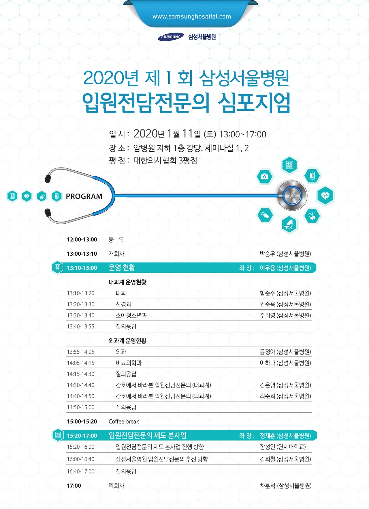 그 전 2020년 1월 11일(토) 서울삼성병원 입원전담전문의 심포지엄 있어서 홍보해 드립니다.