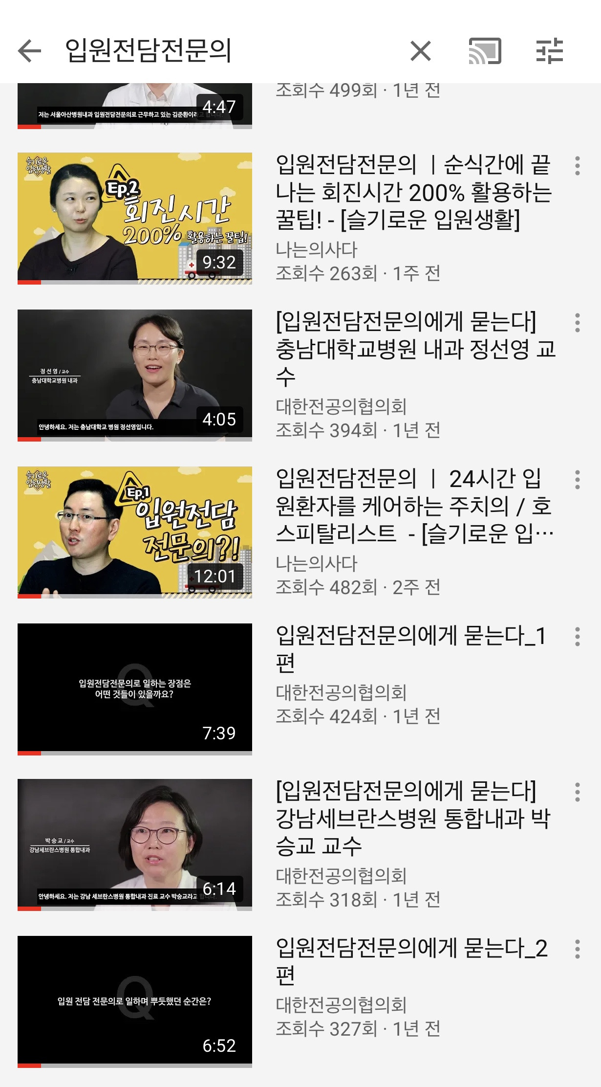 대한전공의협의회와 나는 의사다에서 많이 도와주셔서 유튜브에서도 입원전담전문의 컨텐츠들이 3년전보다 많이 늘었습니다.
