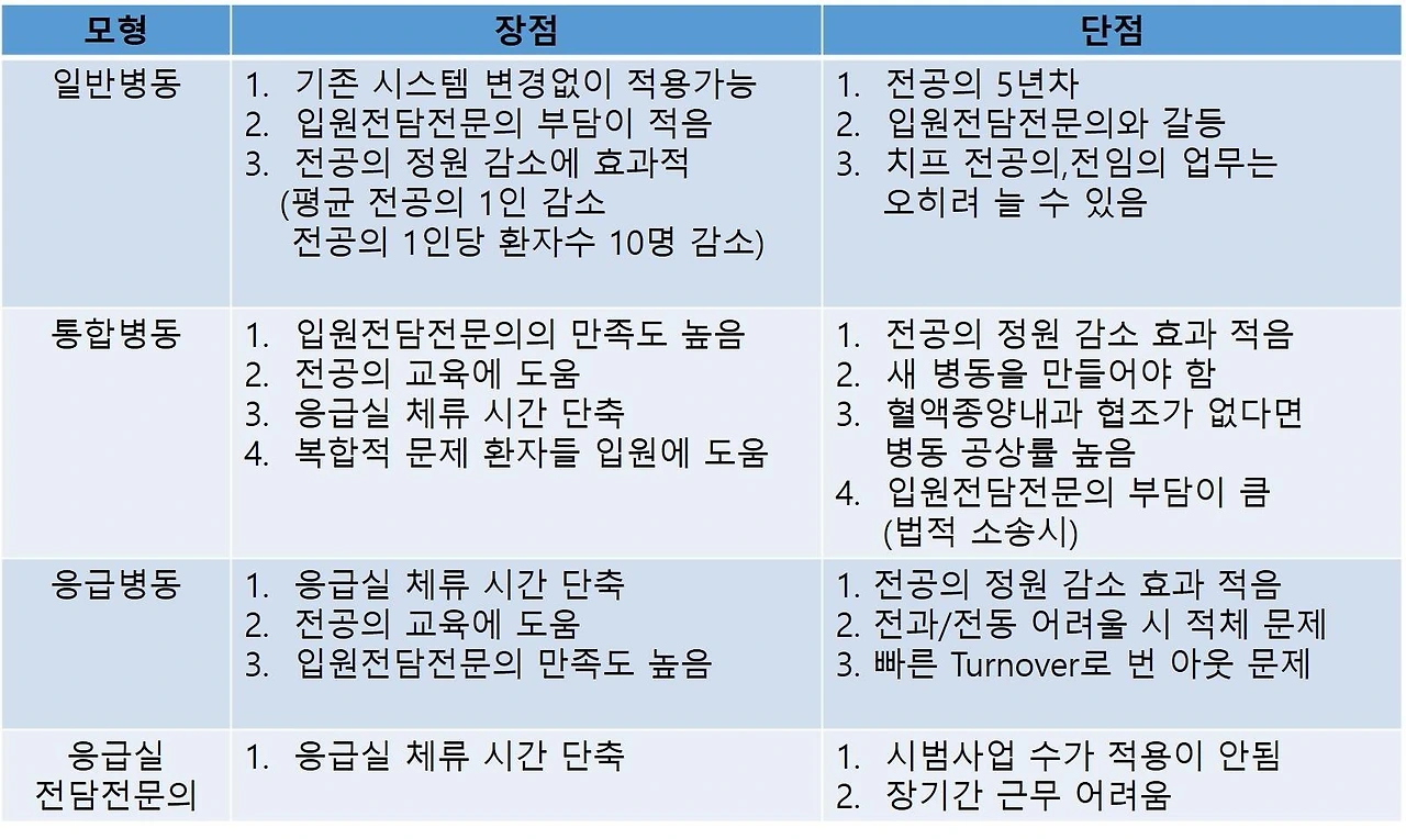 입원전담전문의 모델별 비교